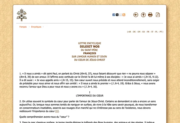 24 October 2024: as part of the jubilee of Christ's apparitions at Paray-le-Monial, Pope Francis publishes the encyclical Dilexit Nos, which takes up the whole spirituality of the Heart of Jesus.
